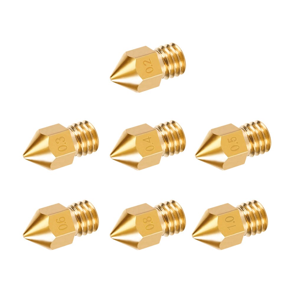 Tronxy 7 pcs MK8 M6 Brass Copper Nozzle J-head Extrusion 3D Printer Parts Brass Copper Nozzle with 0.2 0.3 0.4mm 0.5mm 0.6mm 0.8mm 1.0mm Extruder Print Head For 1.75MM Filaments