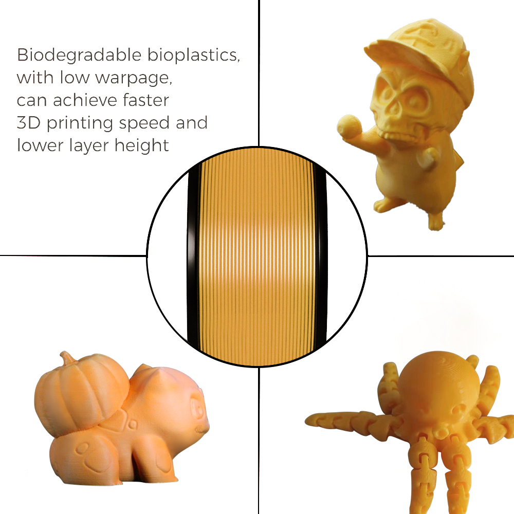 PLA filament is eco-friendly, low shrinkage, high strength, excellent toughness material. Printing product stable performance.