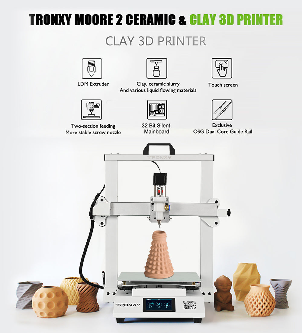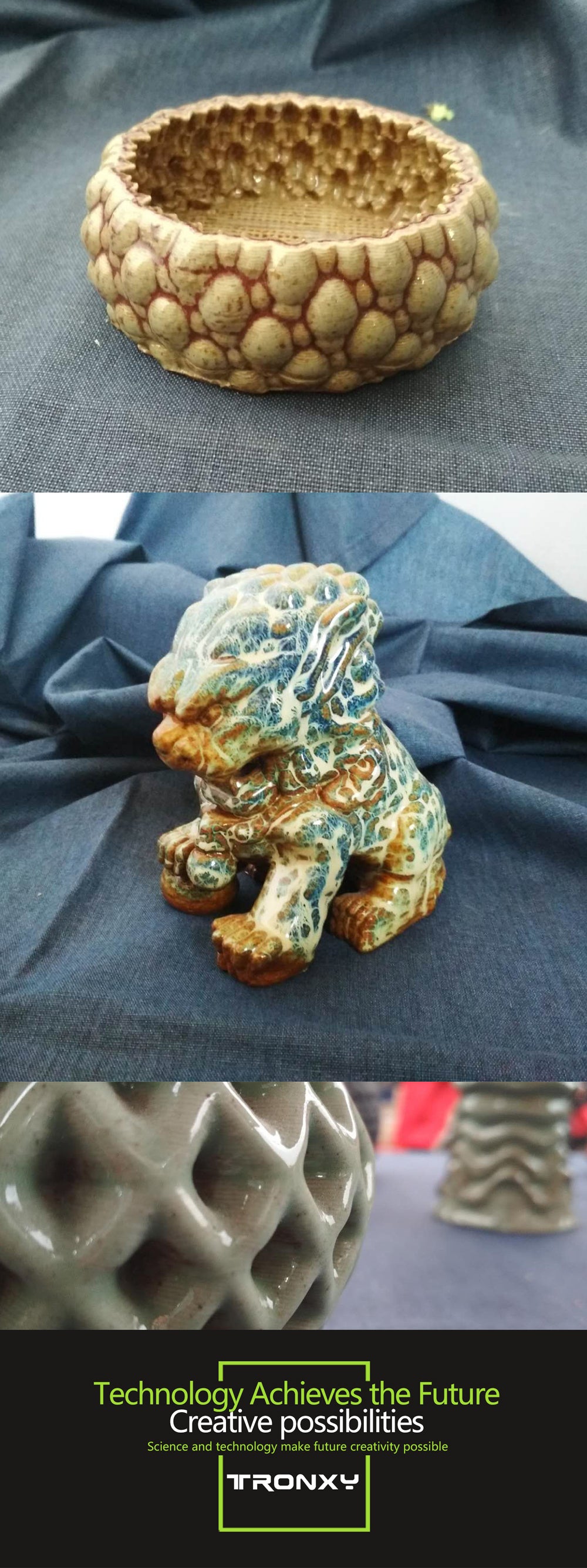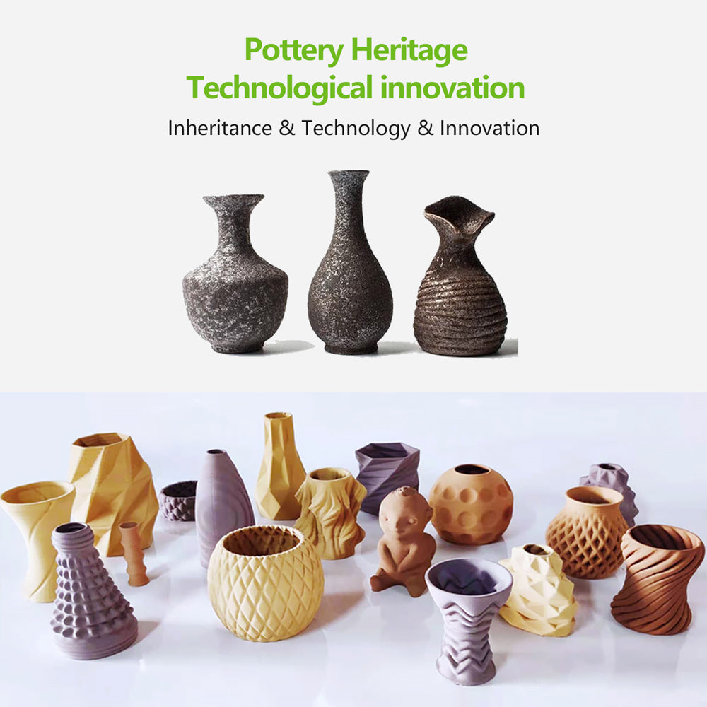 Feature:1. LDM Exruder2. Materials: Clay, Ceramics slurry, Red Porcelain and various liquid flowing materials3. Two-stage feeding, more stable screw nozzle4. Exclusive OSG Dual Core Guide Rail5. 3.5 Inch Touch Sreen6. 32 Bit Silent Mainboard