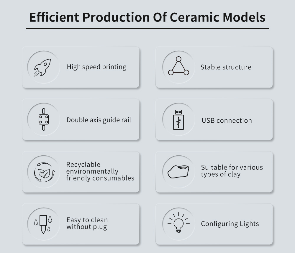 2. LDM Exruder 3. Materials: Clay,Ceramics slurry, Red Porcelain and various liquid flowing materials