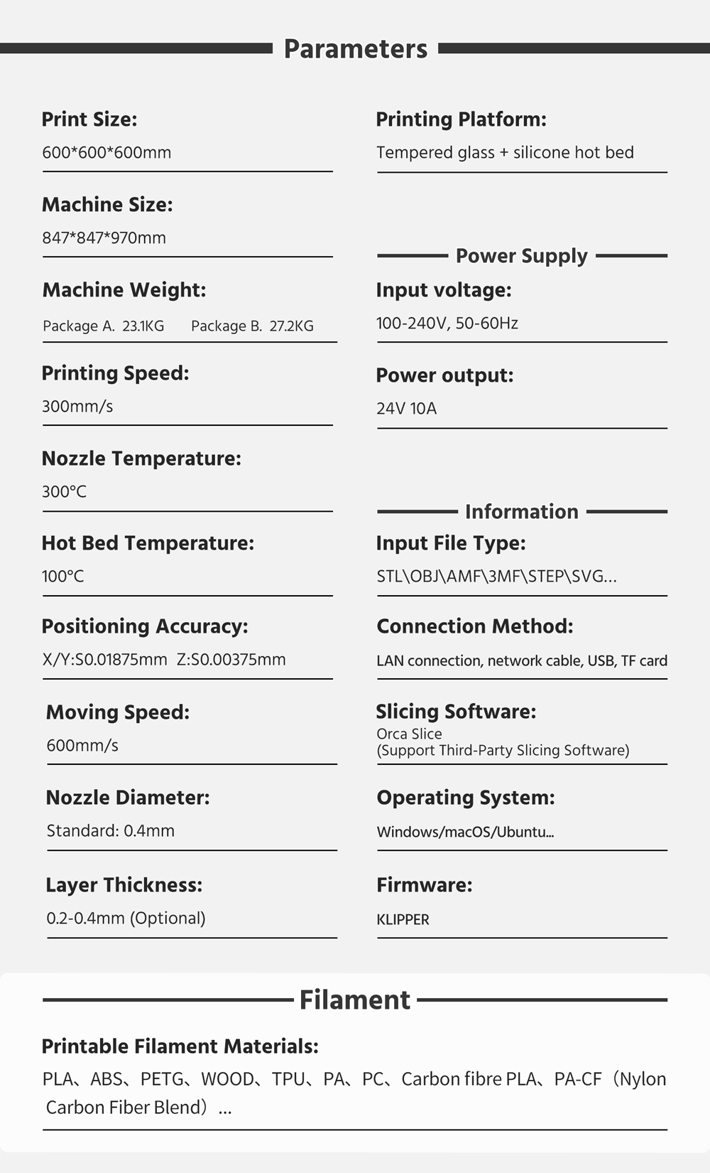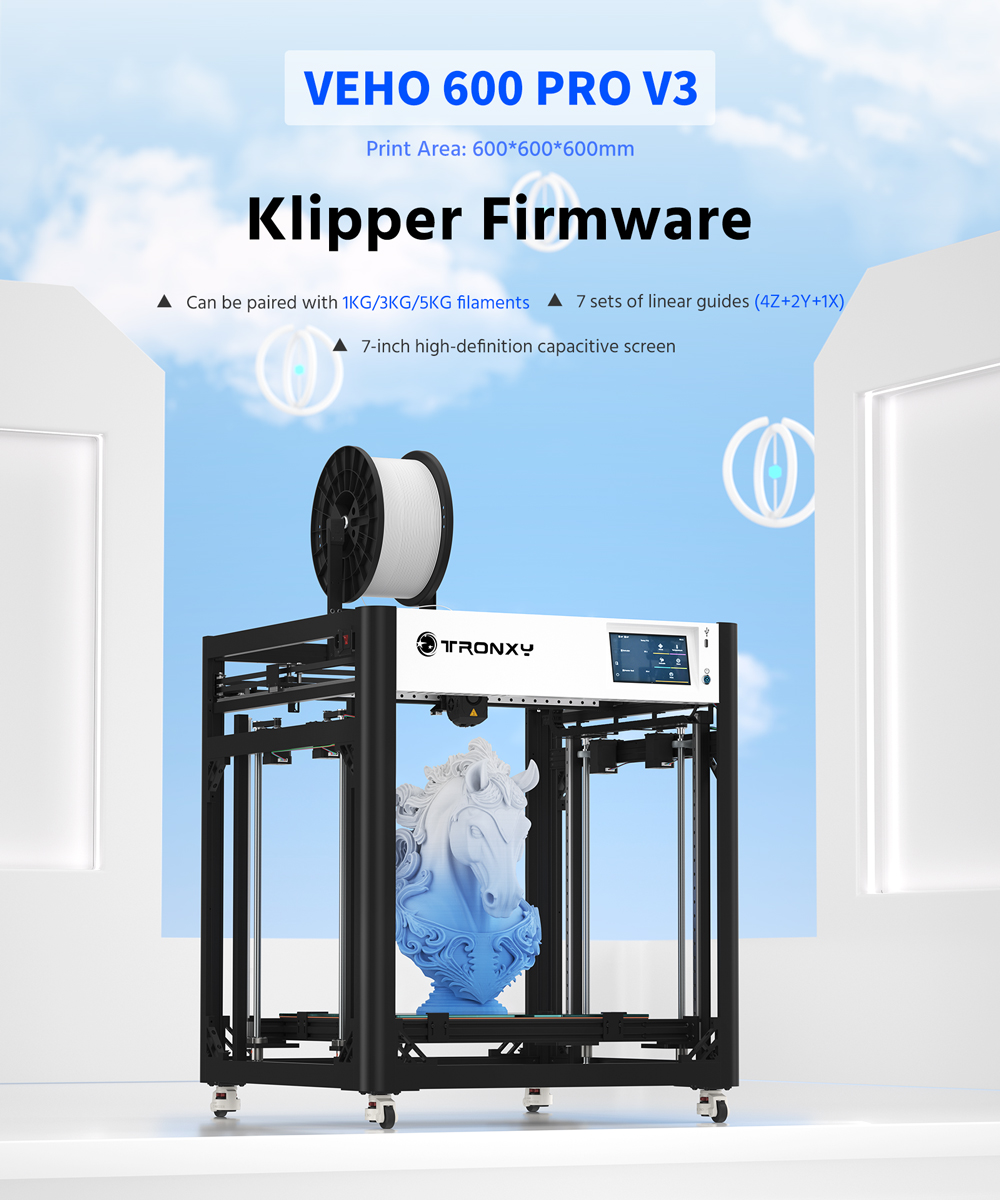 Tronxy VEHO 600 Pro V3 3D Printer Klipper CoreXY 7inch Touch Screen High Speed Printing 600mm/s 216L